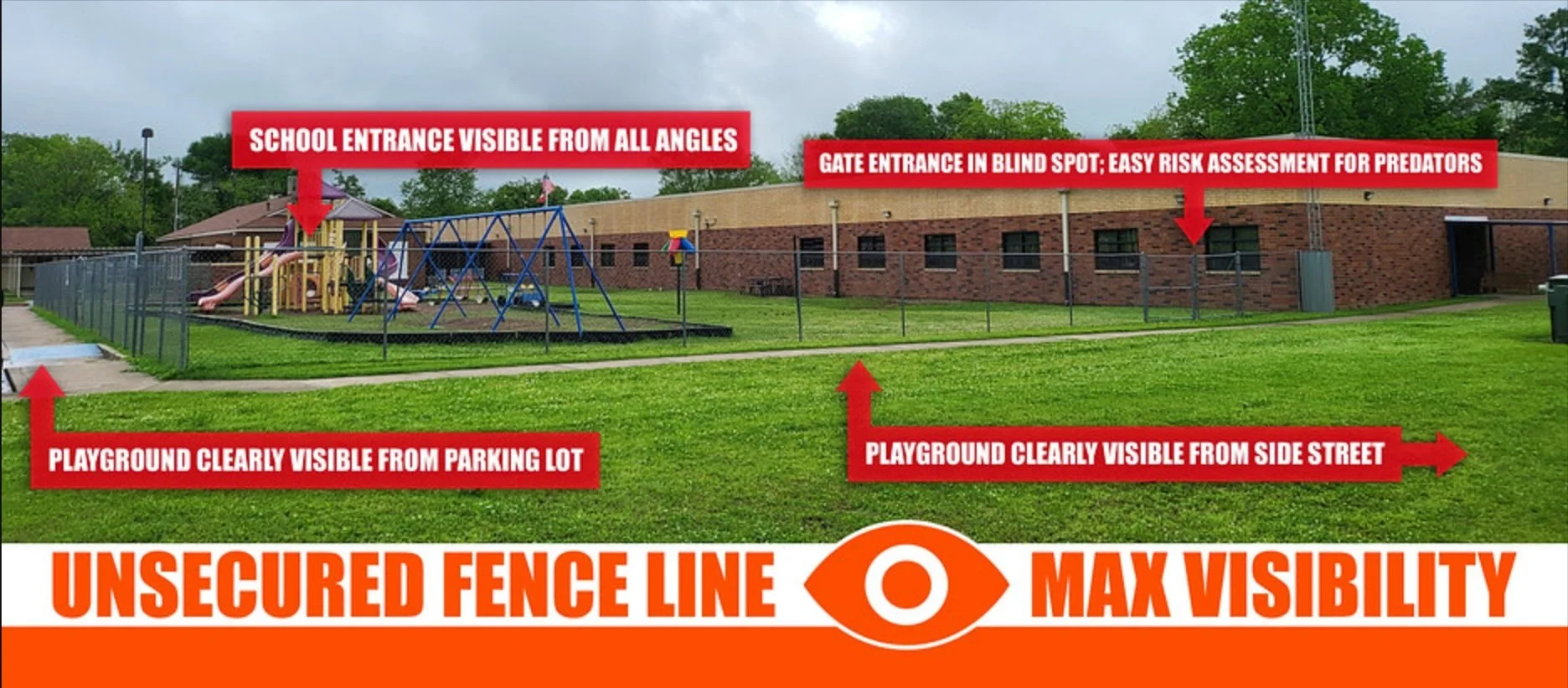Predators rely on visual access to target children. Playgrounds without proper barriers are vulnerable, increasing the risk of predators observing children. Don't let your school or community park become a statistic.
